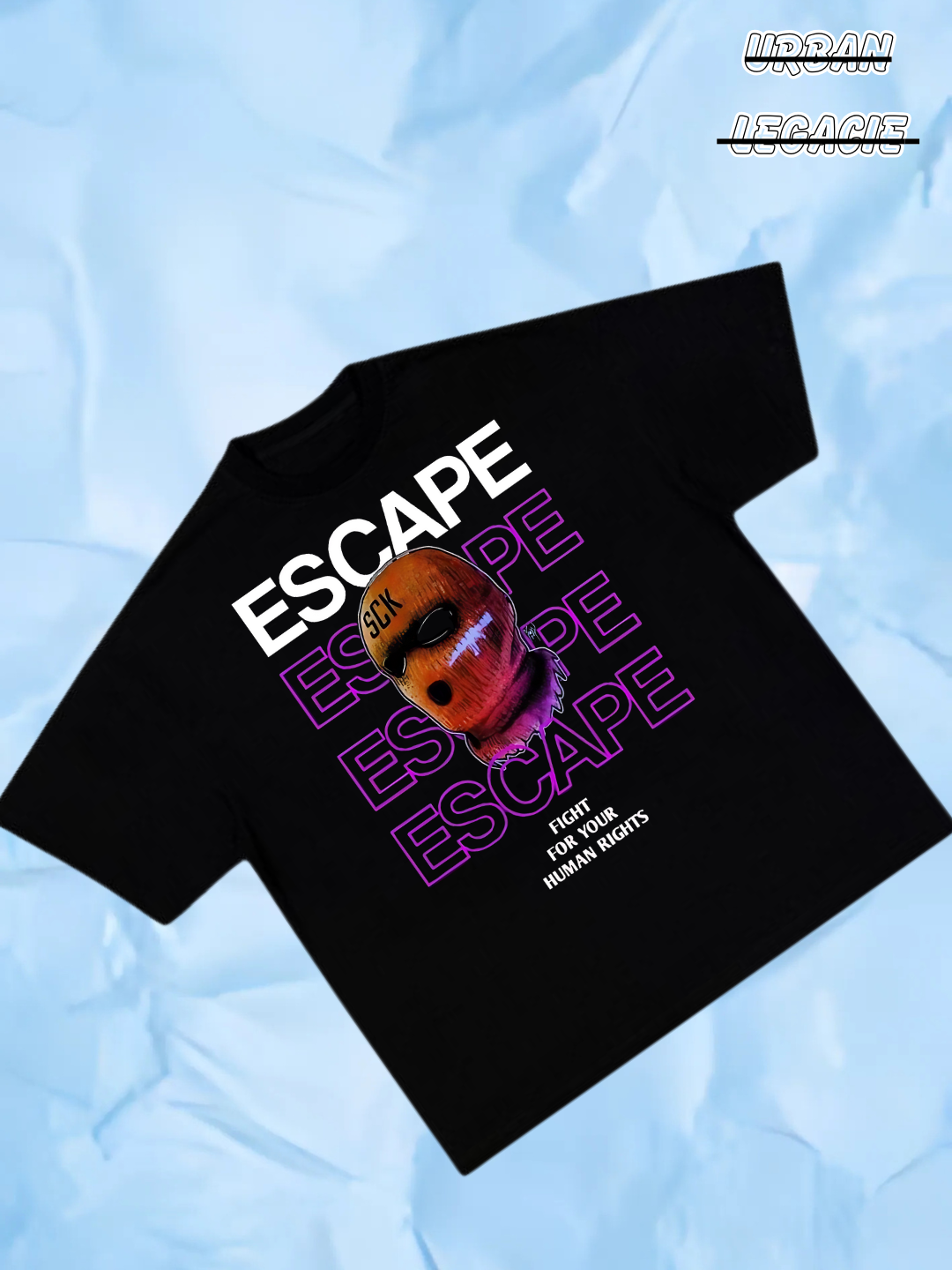 Make your stand with the Fight for Rights Tee. Designed with bold “ESCAPE” typography layered across the front and a striking masked artwork, this oversized tee is a statement on freedom and resistance. The message is clear: “Fight for your human rights.”
